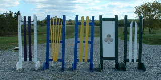 Blam Standards, Oxer, 2 Colour Picket gate, 2 Colour Poles |