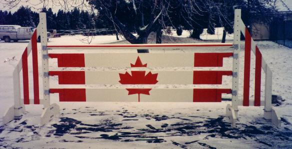 Red & White Deluxe Wings, Canada Jump backside, 2 Colour Horizontal striped Poles