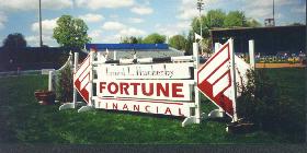 Sponsor Jump, Oxer (Vertical Standards, 2 Colour Poles |